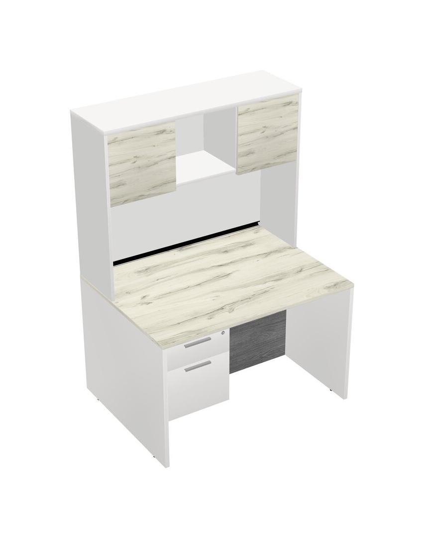 Heinne Holz Rectangular Office Desk Plus White Hanging Drawers And White Hutch
