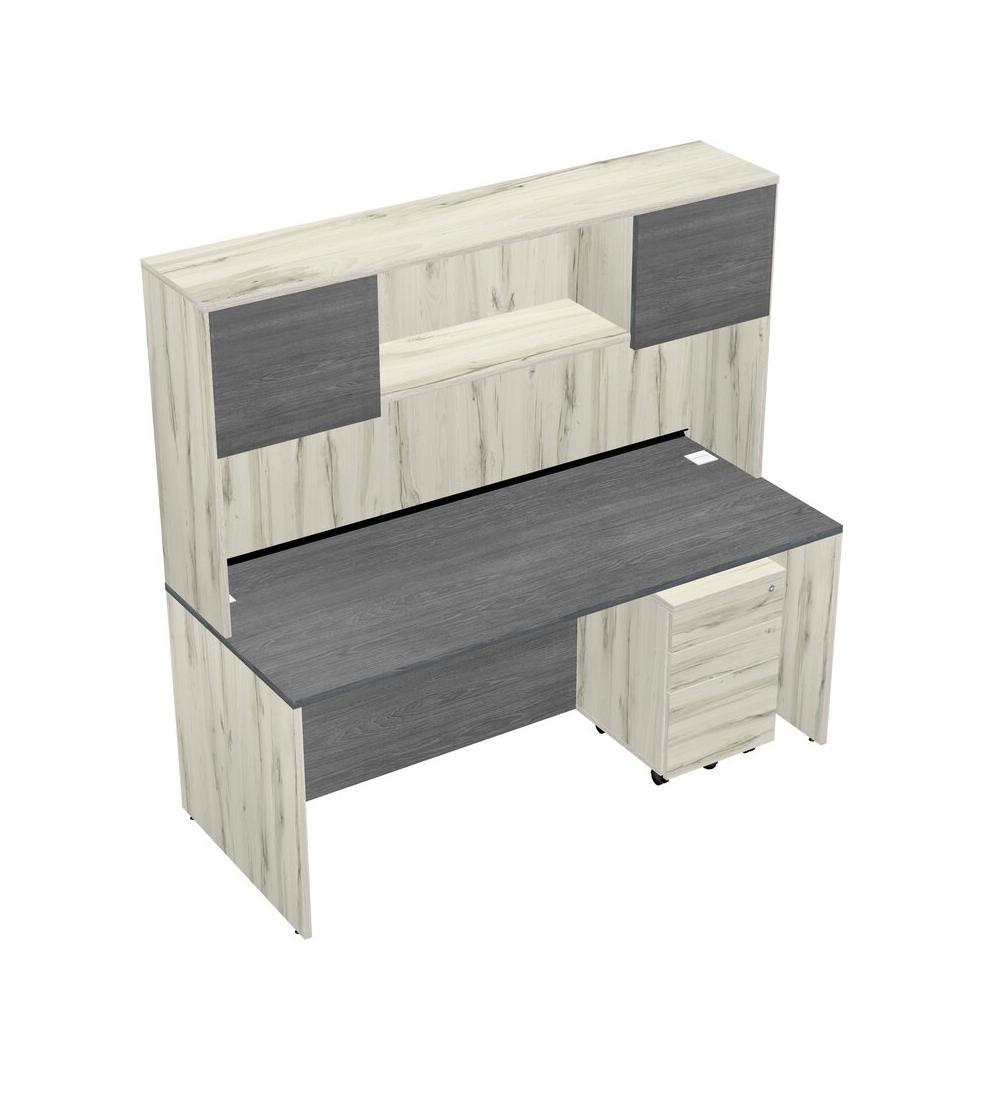 Grey Rectangular Office Desk Plus Heinne Holz Wooden Mobile Drawers And Heinne Holz Hutch