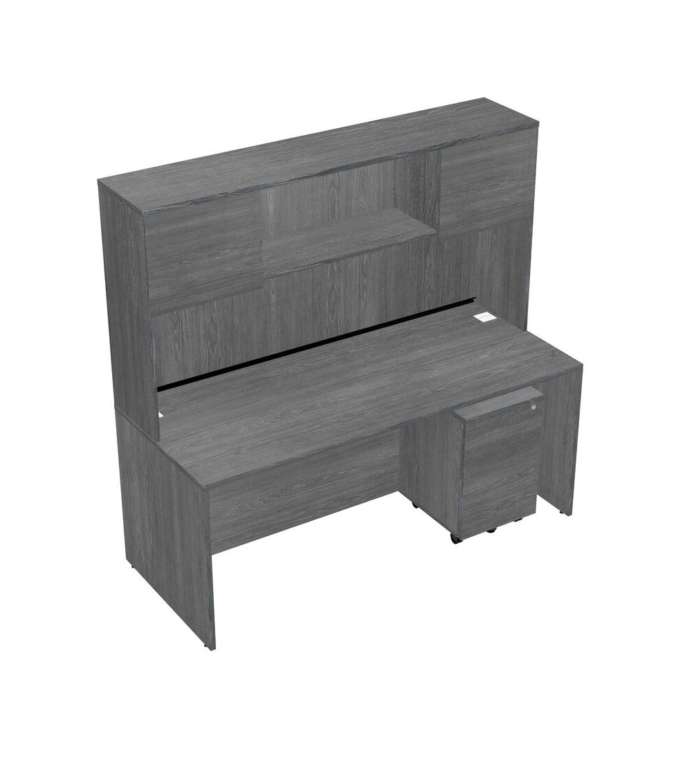 Grey Rectangular Office Desk Plus Grey Wooden Mobile Drawers And Grey Hutch