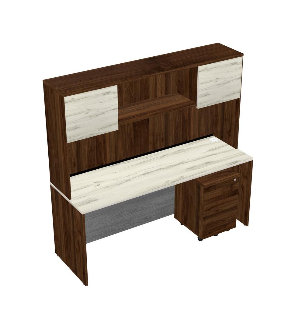 Heinne Holz Rectangular Office Desk Plus Columbia Walnut Wooden Mobile Drawers And Columbia Walnut Hutch