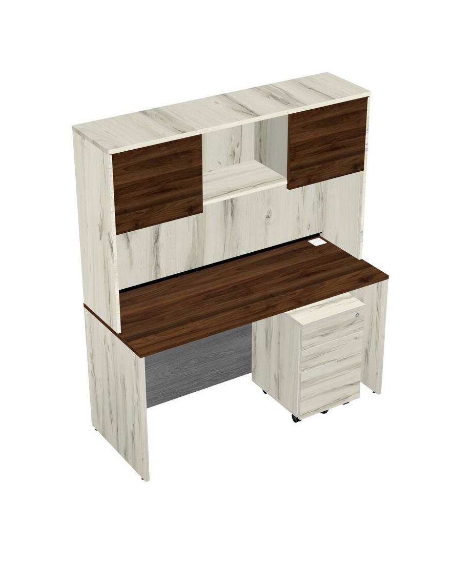Columbia Walnut Rectangular Office Desk Plus Heinne Holz Wooden Mobile Drawers And Heinne Holz Hutch