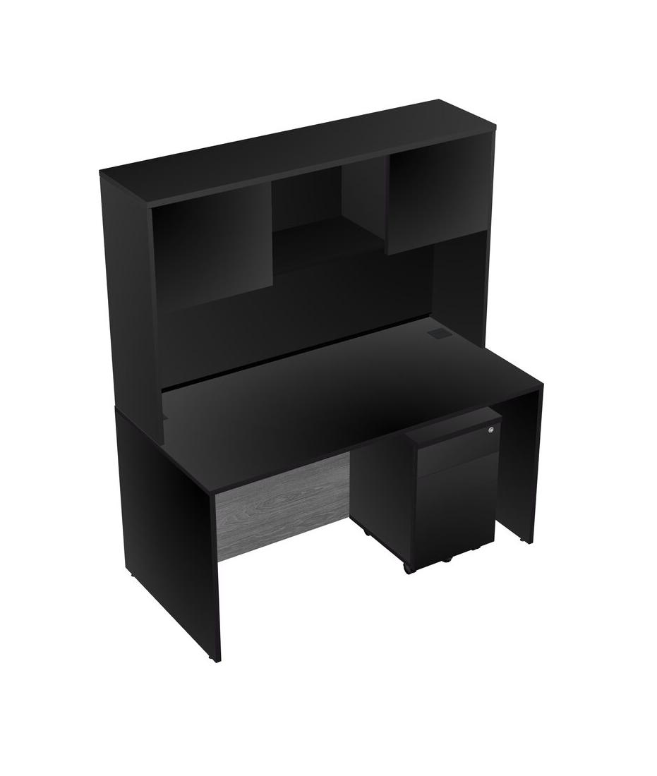Black Rectangular Office Desk Plus Black Wooden Mobile Drawers And Black Hutch