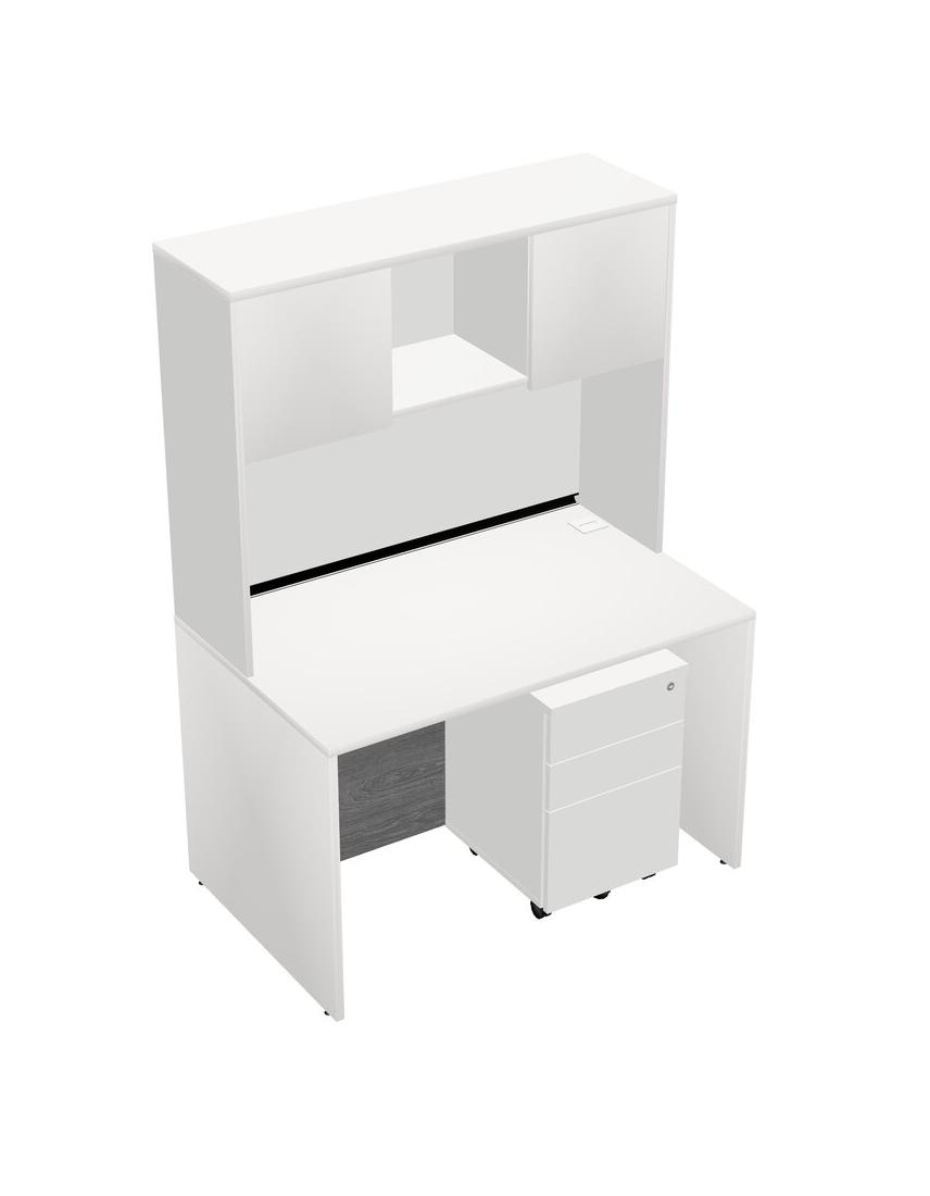 White Rectangular Office Desk Plus White Wooden Mobile Drawers And White Hutch
