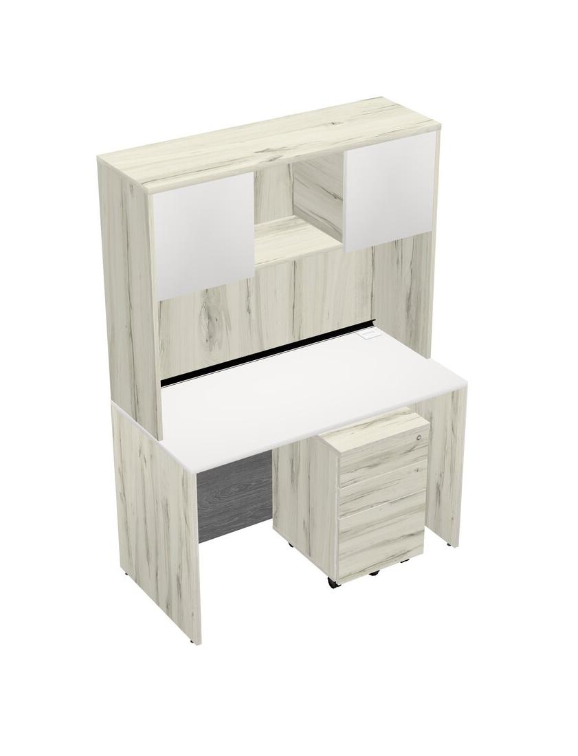 White Rectangular Office Desk Plus Heinne Holz Wooden Mobile Drawers And Heinne Holz Hutch
