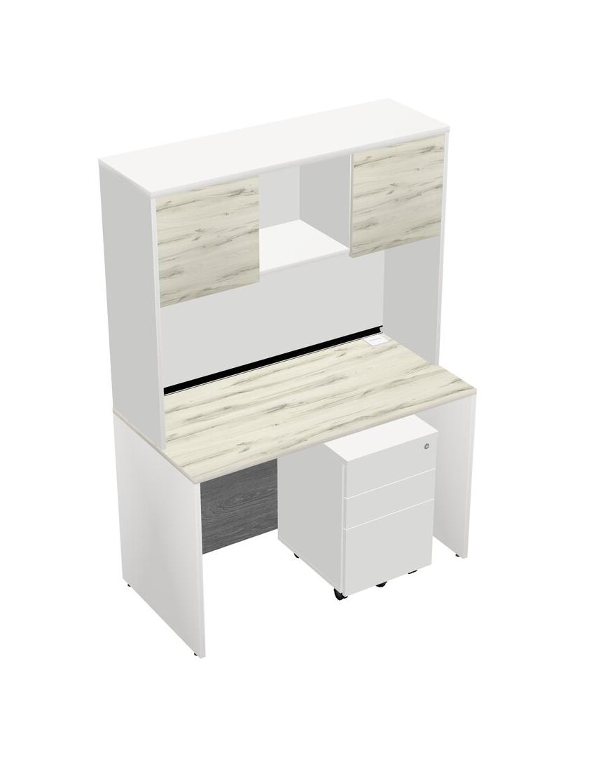 Heinne Holz Rectangular Office Desk Plus White Wooden Mobile Drawers And White Hutch