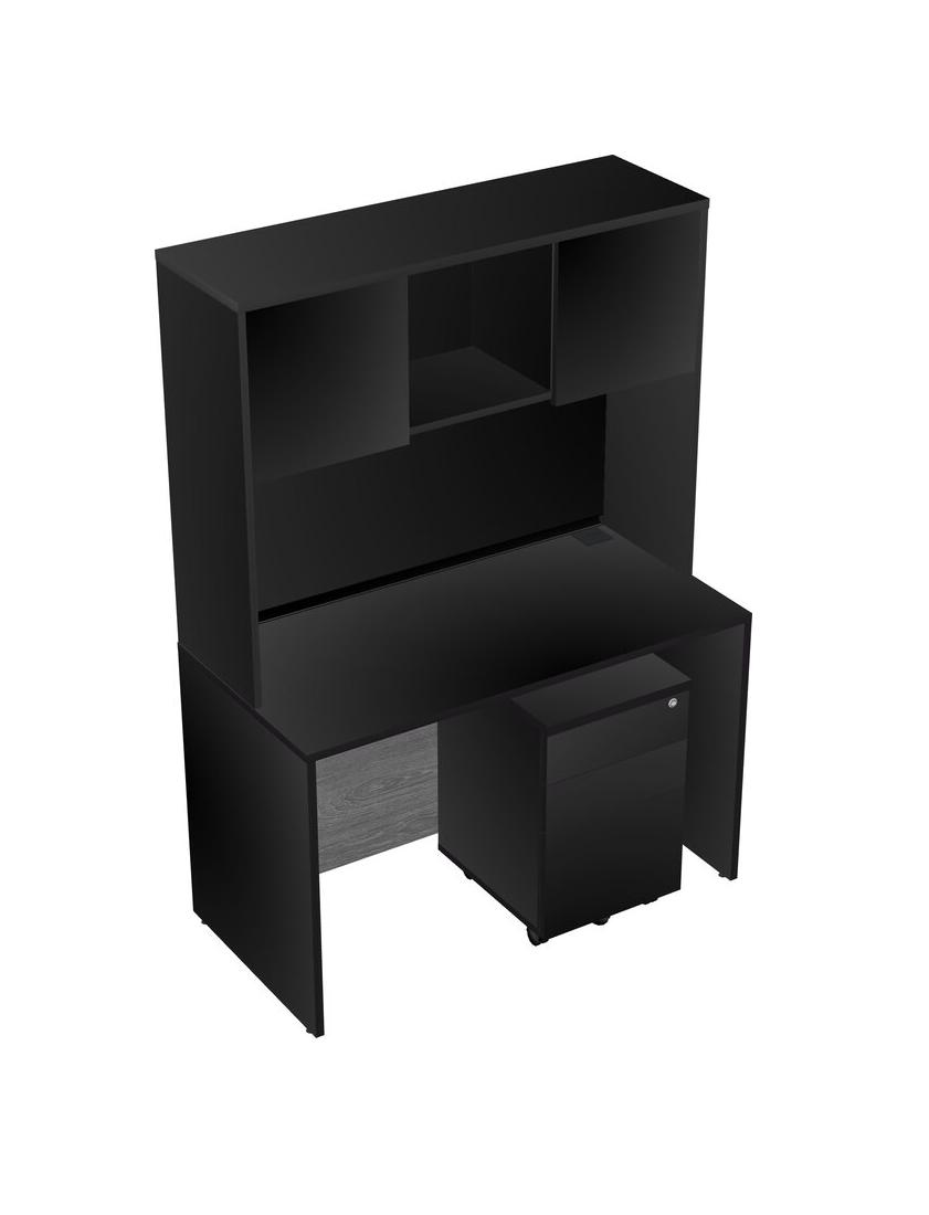 Black Rectangular Office Desk Plus Black Wooden Mobile Drawers And Black Hutch