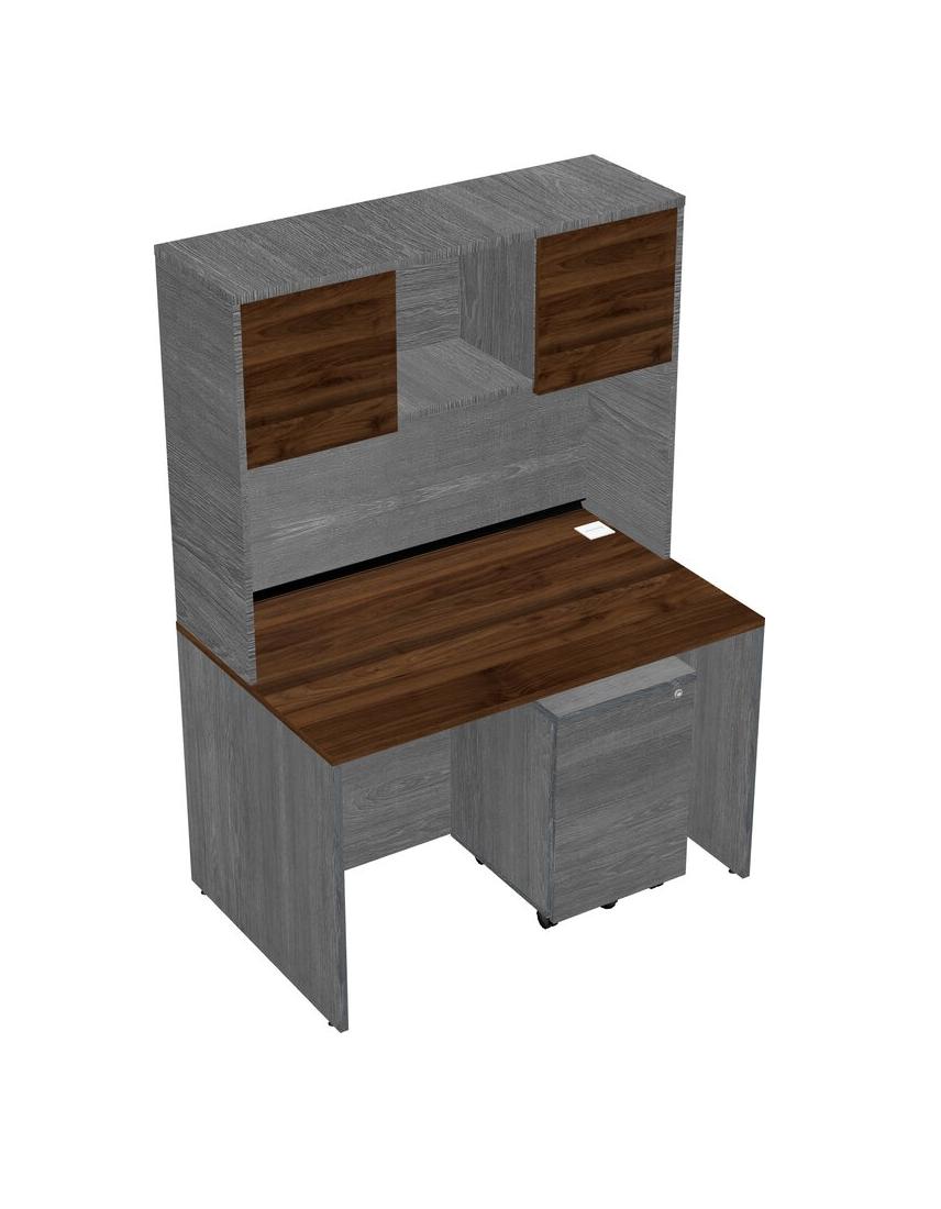 Columbia Walnut Rectangular Office Desk Plus Grey Wooden Mobile Drawers And Grey Hutch