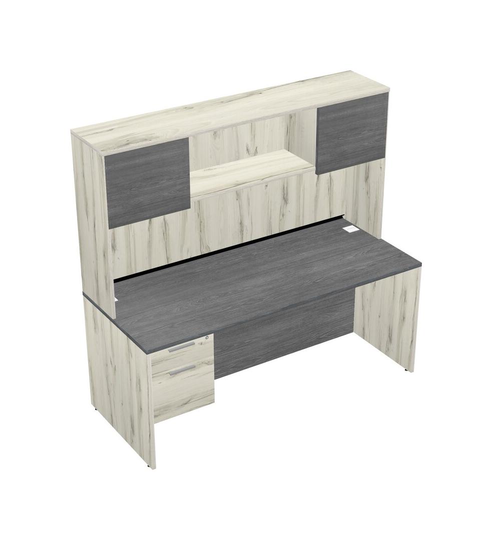 Grey Rectangular Office Desk Plus Heinne Holz Hanging Drawers And Heinne Holz Hutch