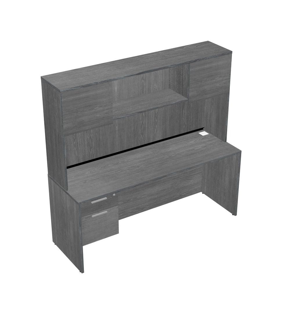 Grey Rectangular Office Desk Plus Grey Hanging Drawers And Grey Hutch