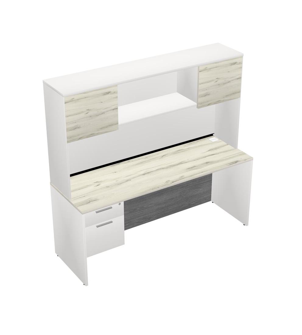 Heinne Holz Rectangular Office Desk Plus White Hanging Drawers And White Hutch
