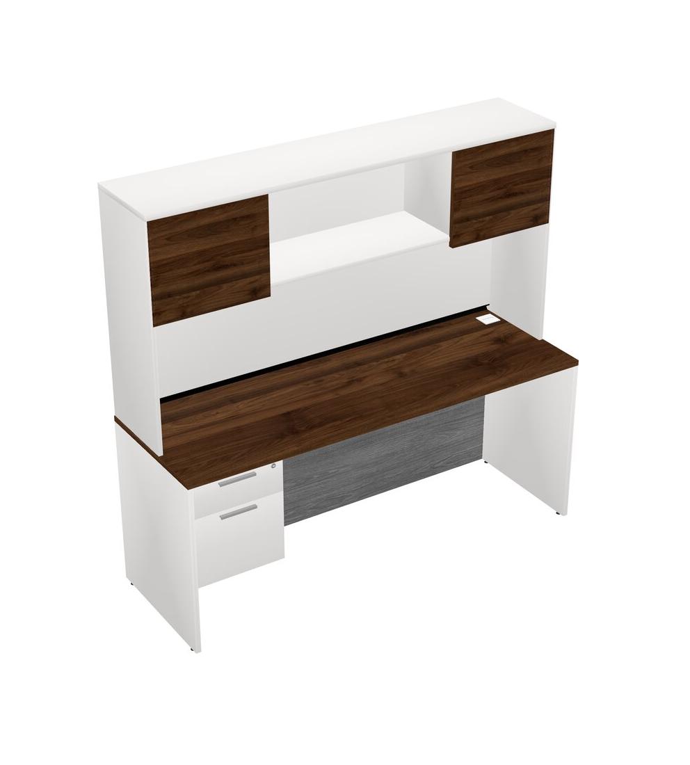 Columbia Walnut Rectangular Office Desk Plus White Hanging Drawers And White Hutch