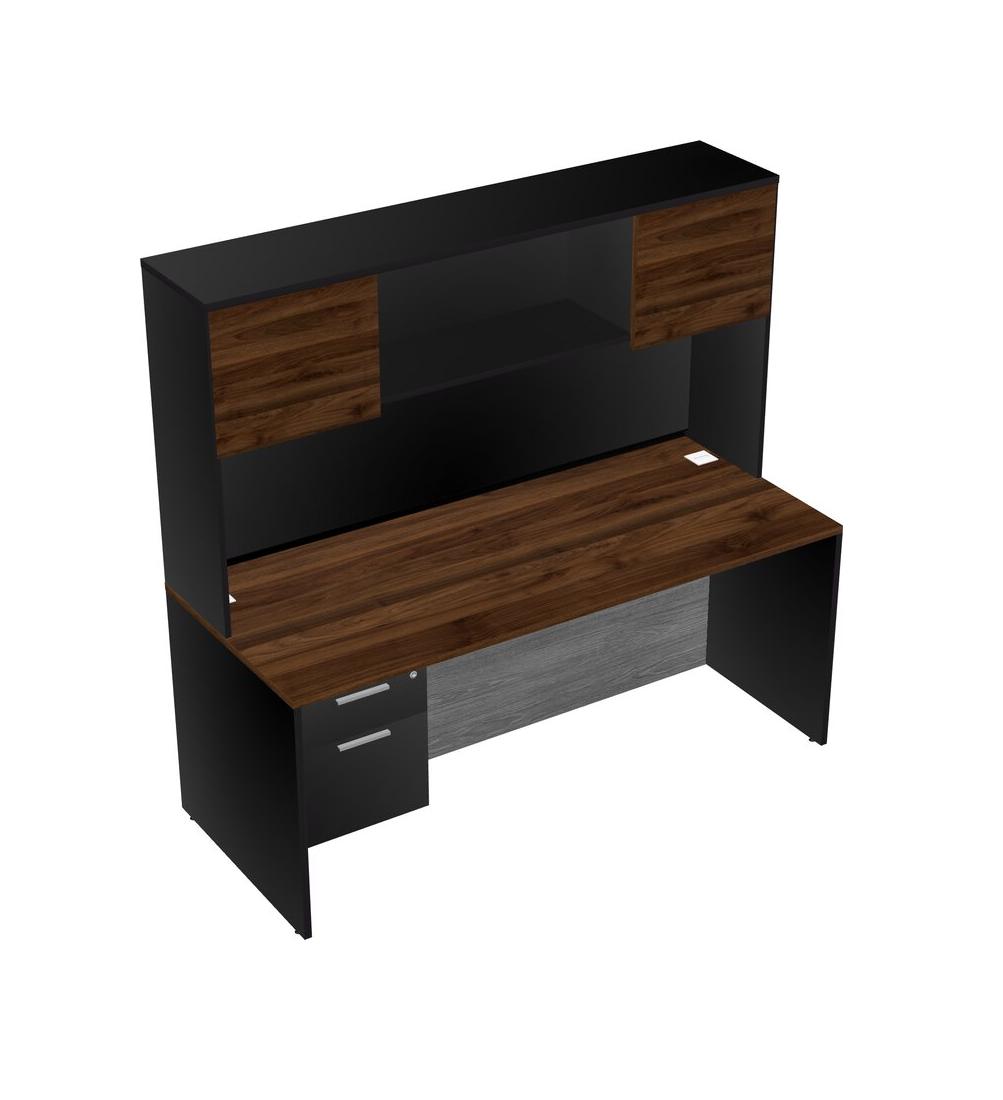 Columbia Walnut Rectangular Office Desk Plus Black Hanging Drawers And Black Hutch