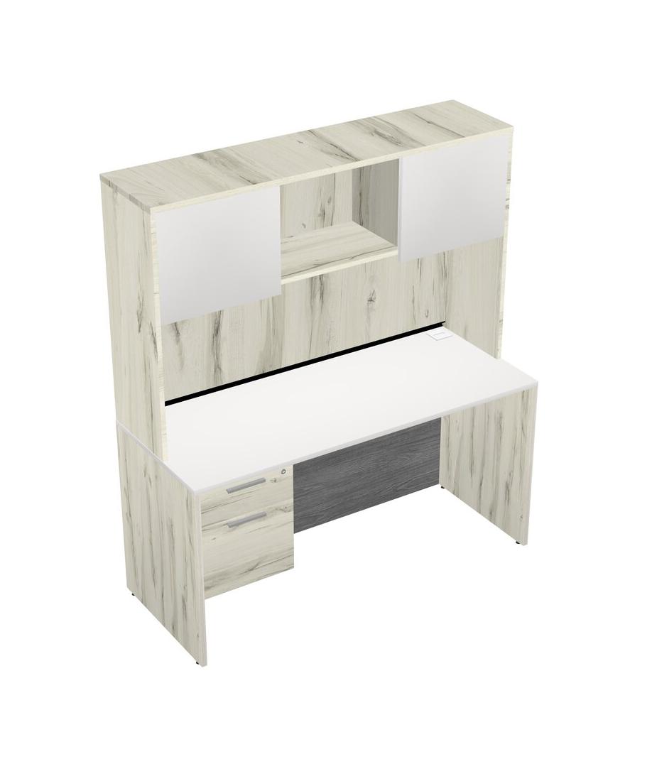 White Rectangular Office Desk Plus Heinne Holz Hanging Drawers And Heinne Holz Hutch