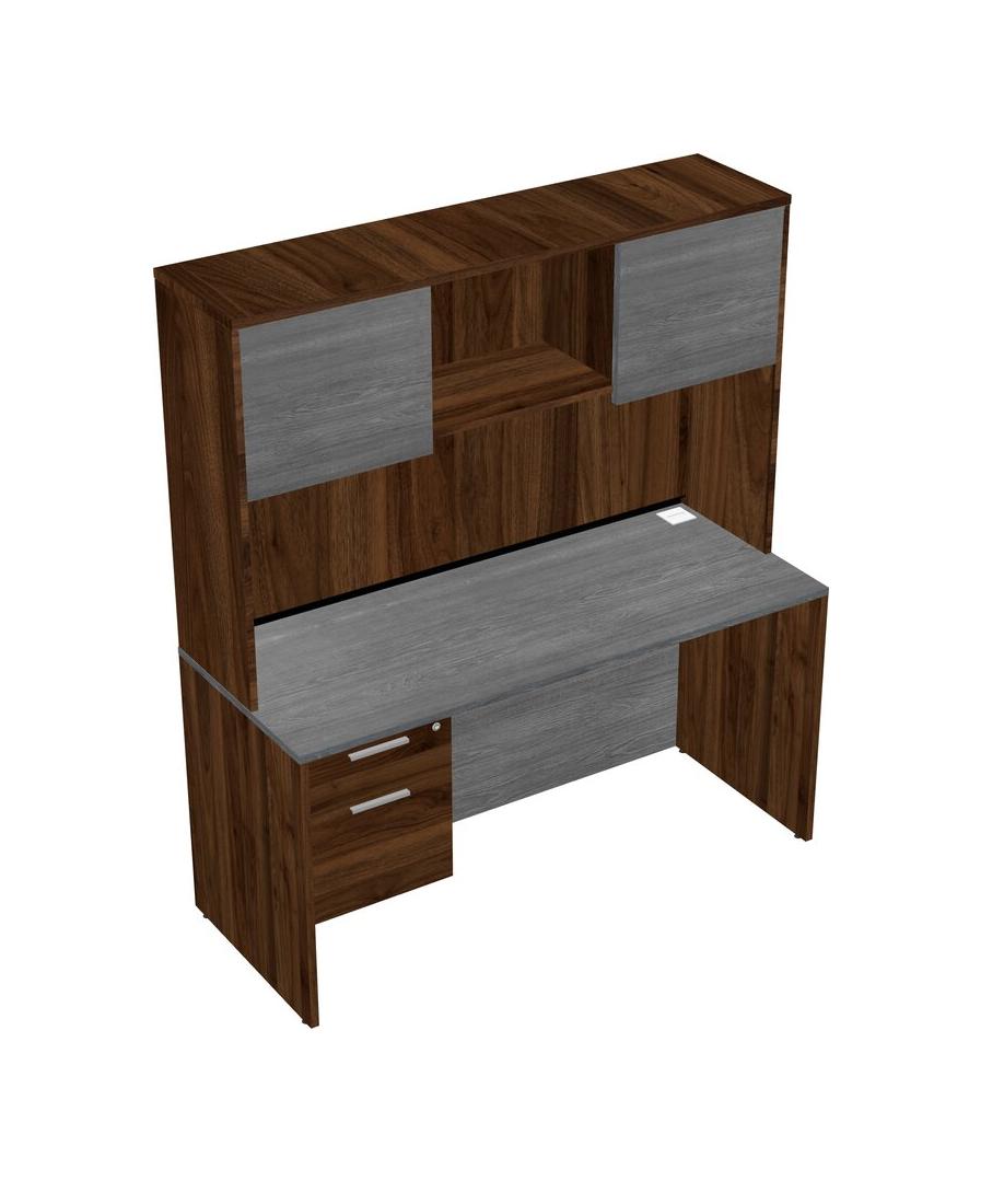 Grey Rectangular Office Desk Plus Columbia Walnut Hanging Drawers And Columbia Walnut Hutch