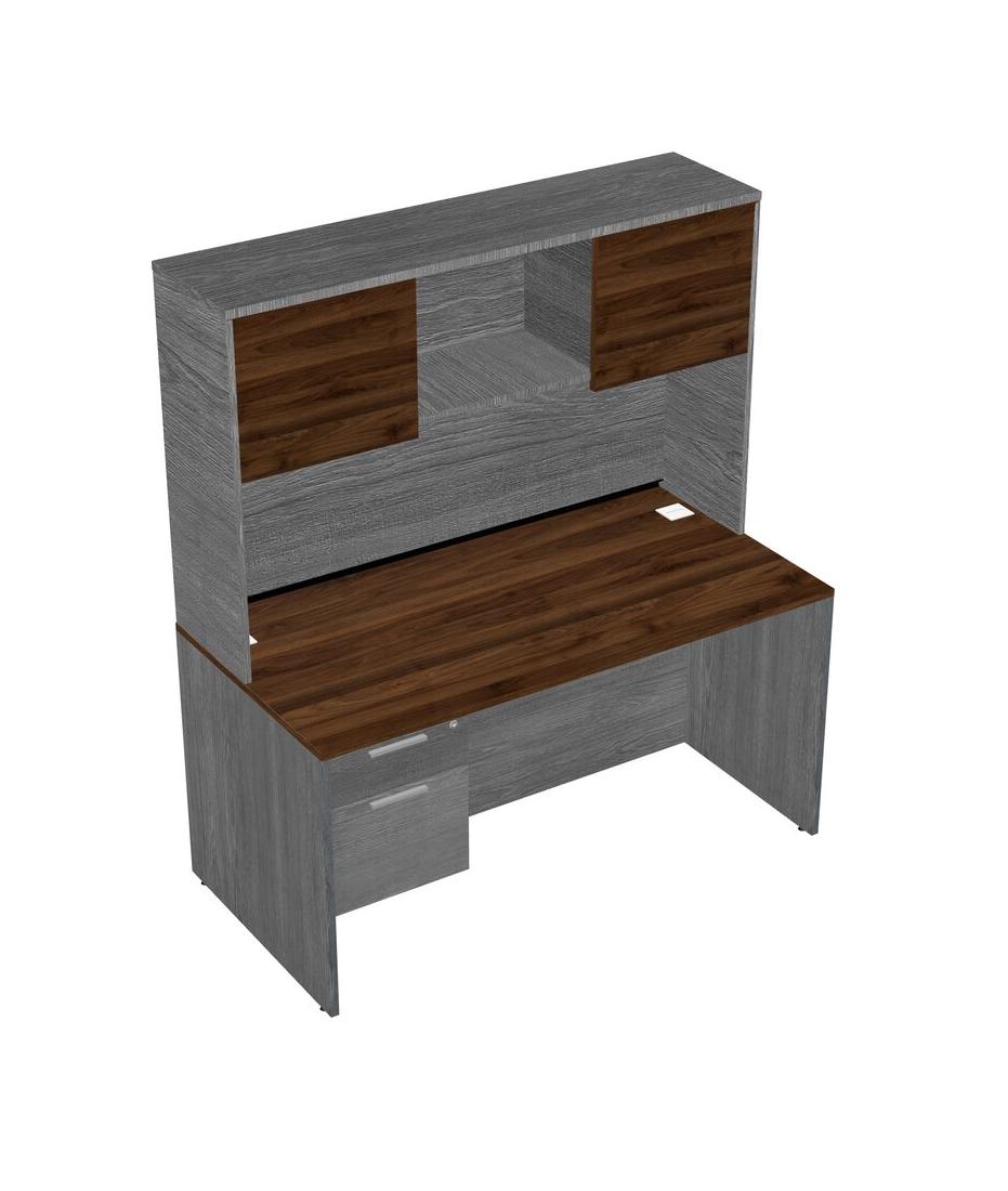 Columbia Walnut Rectangular Office Desk Plus Grey Hanging Drawers And Grey Hutch