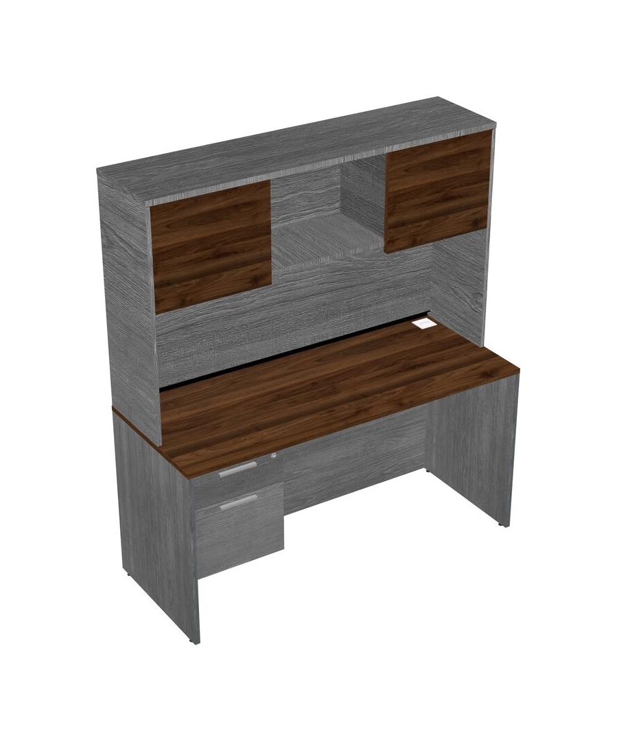 Columbia Walnut Rectangular Office Desk Plus Grey Hanging Drawers And Grey Hutch