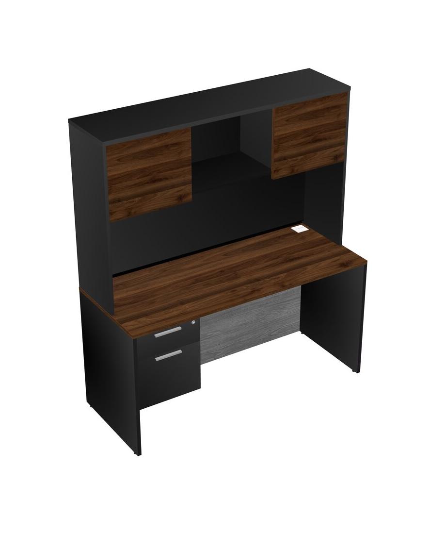 Columbia Walnut Rectangular Office Desk Plus Black Hanging Drawers And Black Hutch