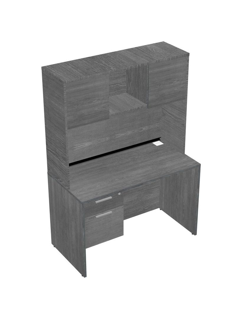 Grey Rectangular Office Desk Plus Grey Hanging Drawers And Grey Hutch