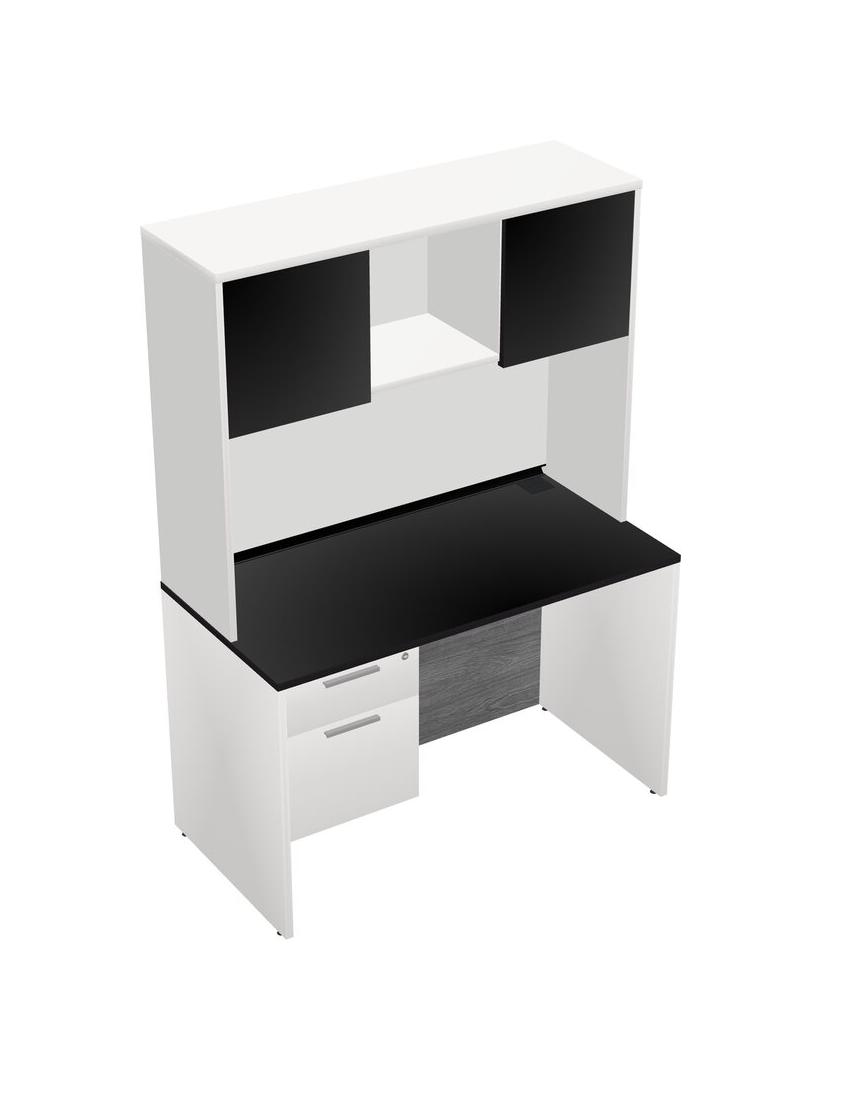 Black Rectangular Office Desk Plus White Hanging Drawers And White Hutch