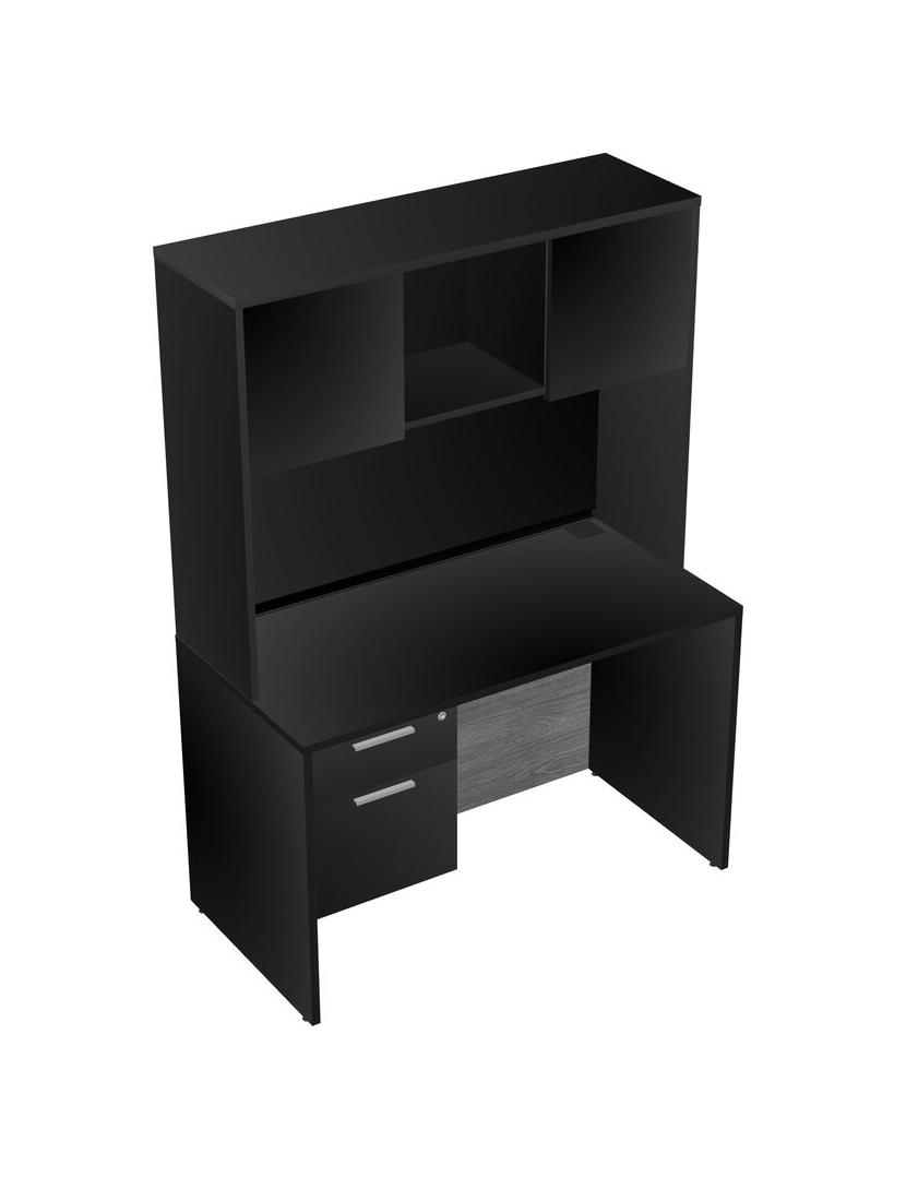 Black Rectangular Office Desk Plus Black Hanging Drawers And Black Hutch