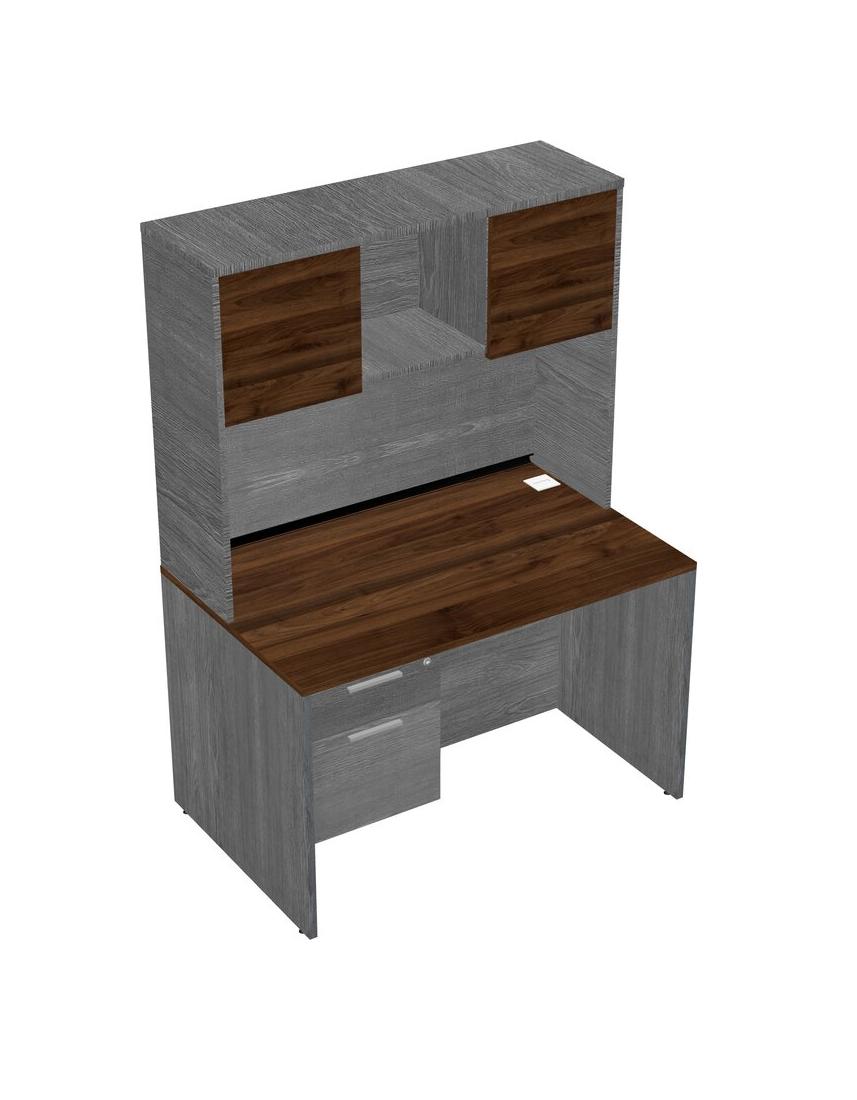 Columbia Walnut Rectangular Office Desk Plus Grey Hanging Drawers And Grey Hutch