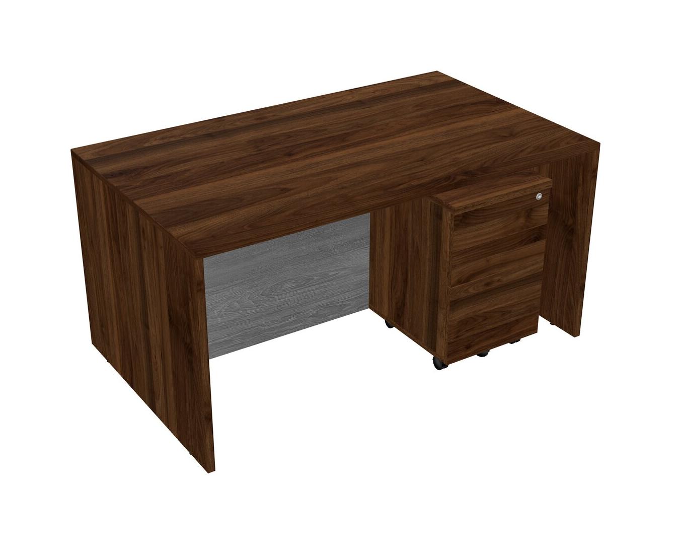 Columbia Walnut Rectangular Office Desk Plus Columbia Walnut Wooden Mobile Drawers