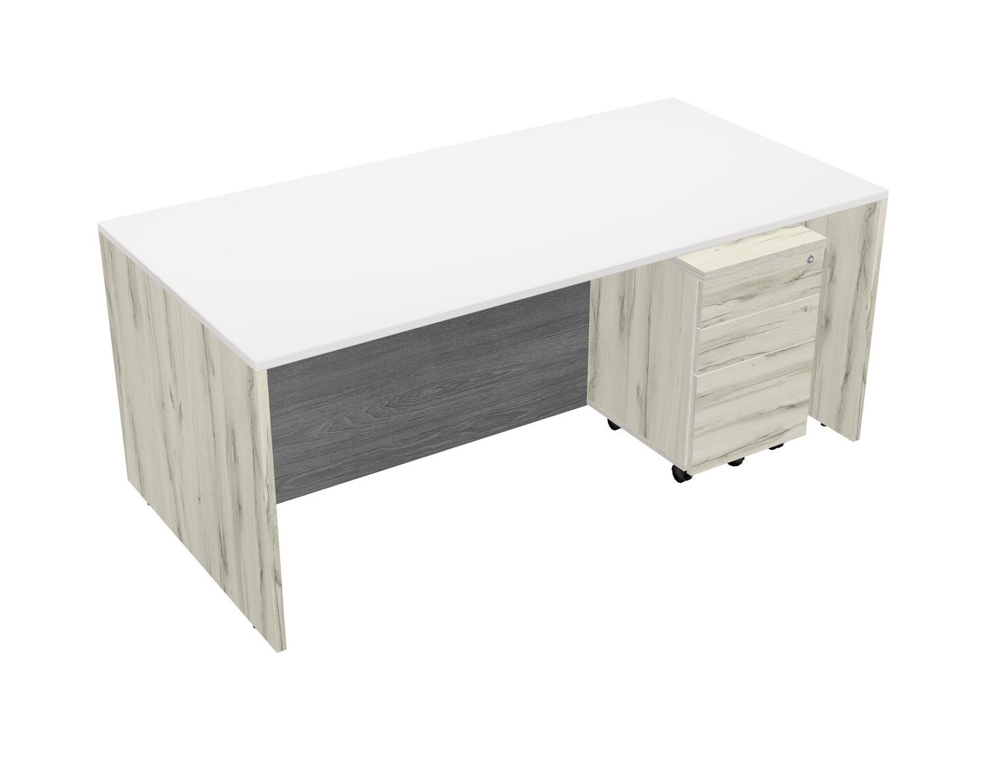 White Rectangular Office Desk Plus Heinne Holz Wooden Mobile Drawers