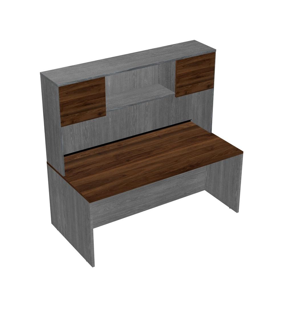 Columbia Walnut Rectangular Office Desk And Grey Hutch