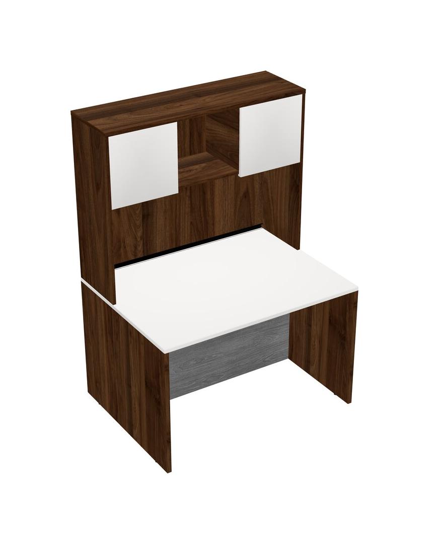 White Rectangular Office Desk And Columbia Walnut Hutch