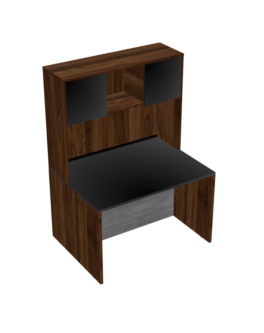 Black Rectangular Office Desk And Columbia Walnut Hutch