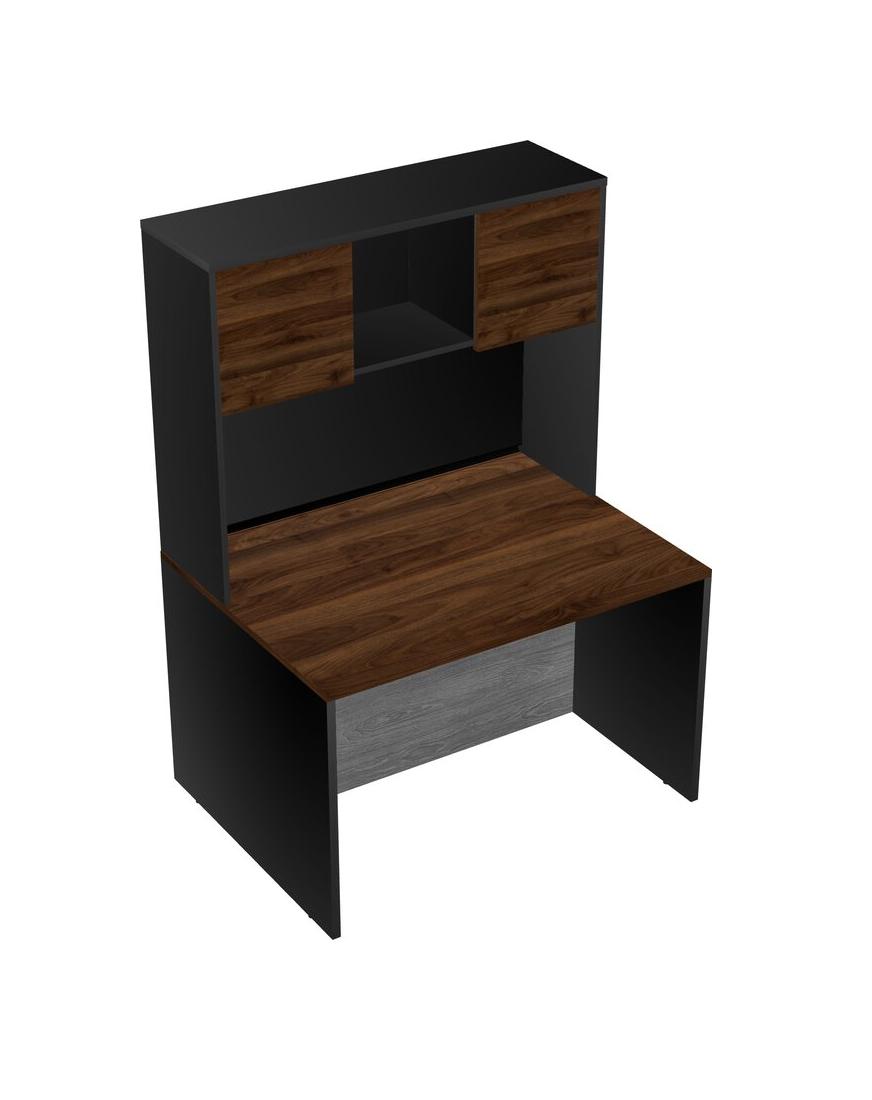 Columbia Walnut Rectangular Office Desk And Black Hutch