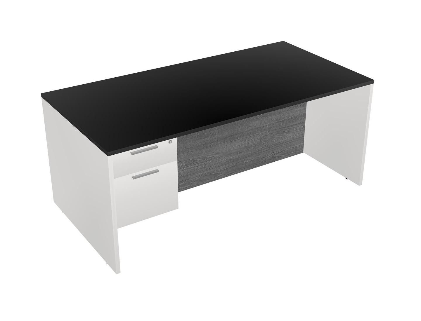 Black Rectangular Office Desk Plus White Hanging Drawers