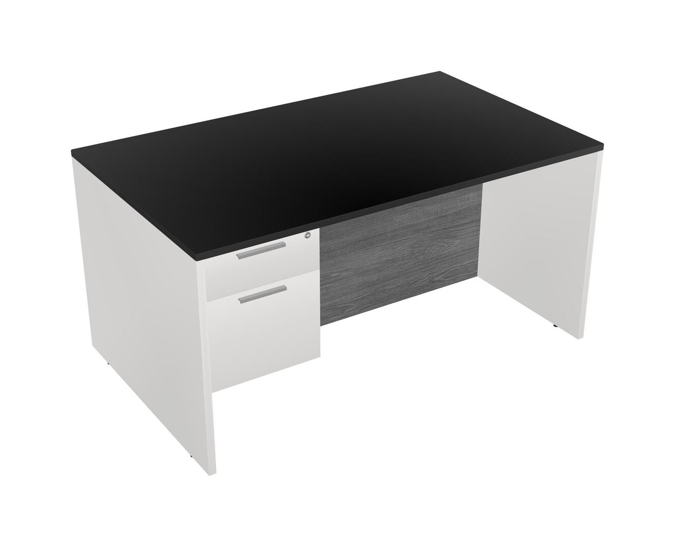 Black Rectangular Office Desk Plus White Hanging Drawers