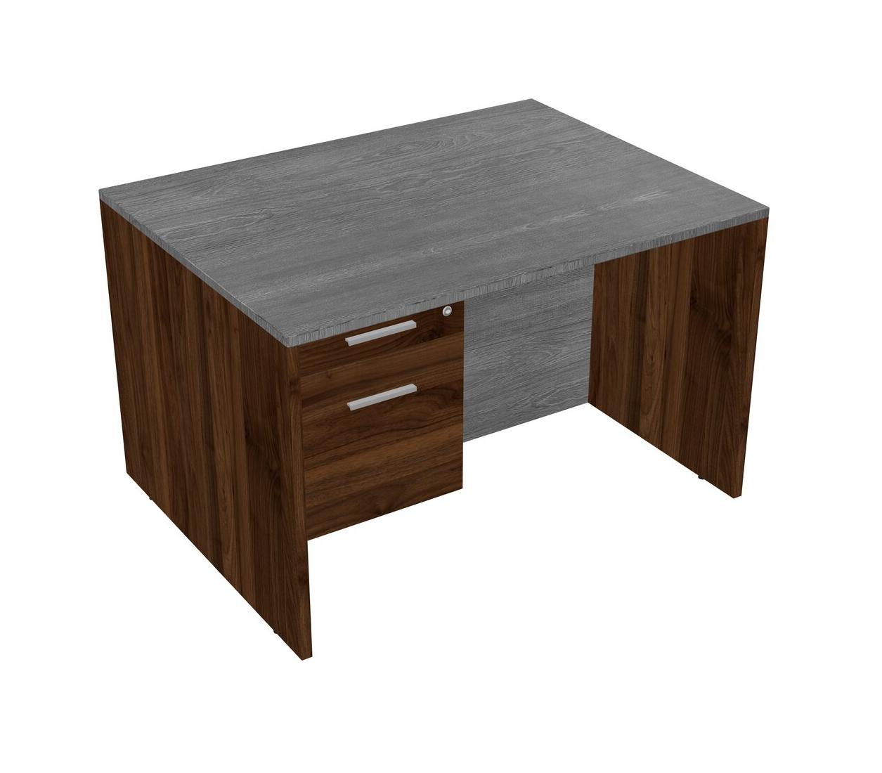 Grey Rectangular Office Desk Plus Columbia Walnut Hanging Drawers