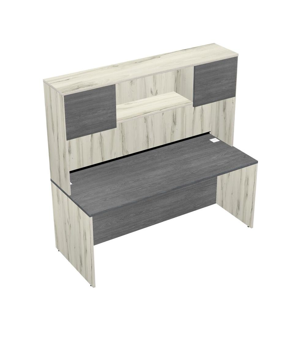 Grey Rectangular Office Desk And Heinne Holz Hutch