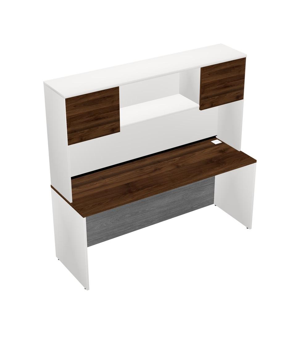 Columbia Walnut Rectangular Office Desk And White Hutch