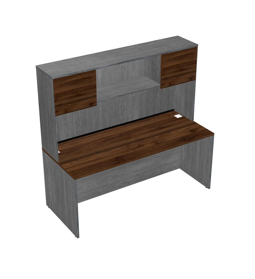 Columbia Walnut Rectangular Office Desk And Grey Hutch