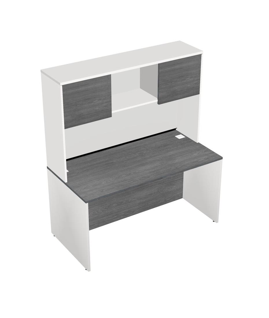 Grey Rectangular Office Desk And White Hutch