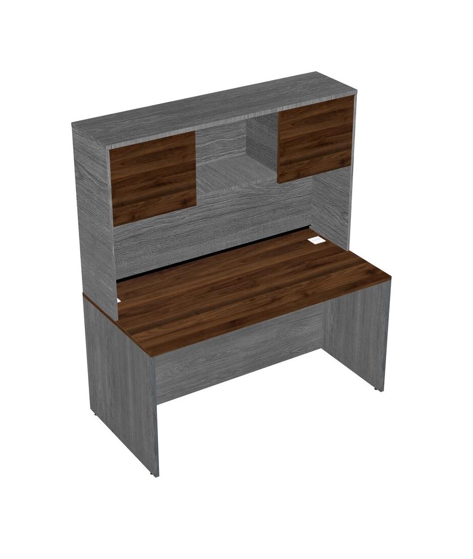 Columbia Walnut Rectangular Office Desk And Grey Hutch