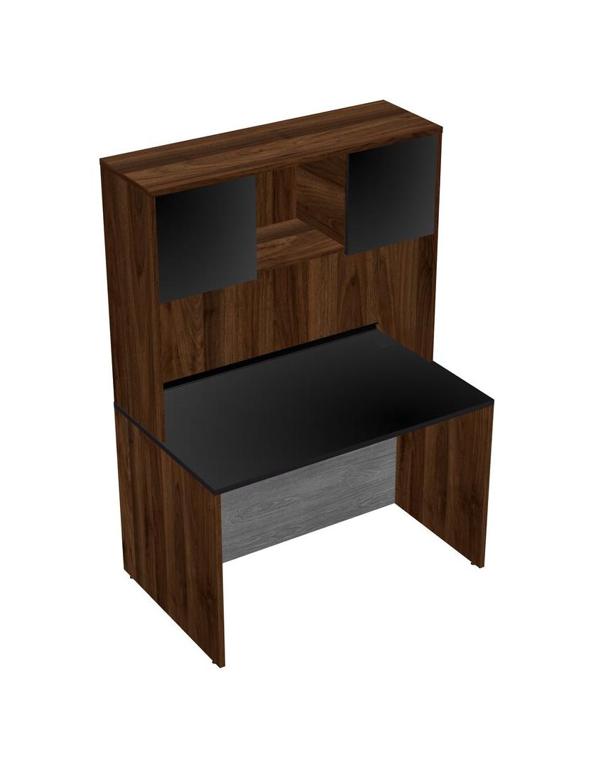 Black Rectangular Office Desk And Columbia Walnut Hutch