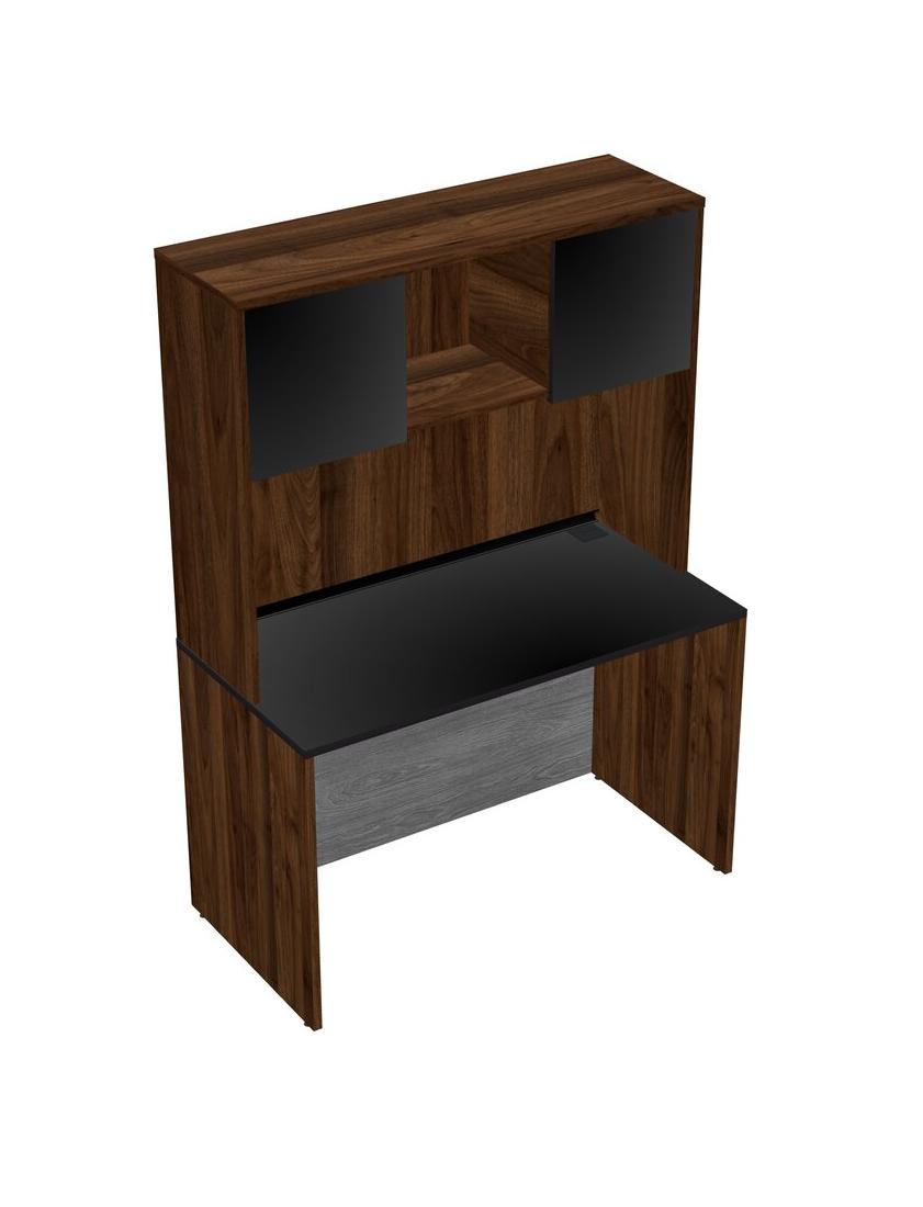 Black Rectangular Office Desk And Columbia Walnut Hutch