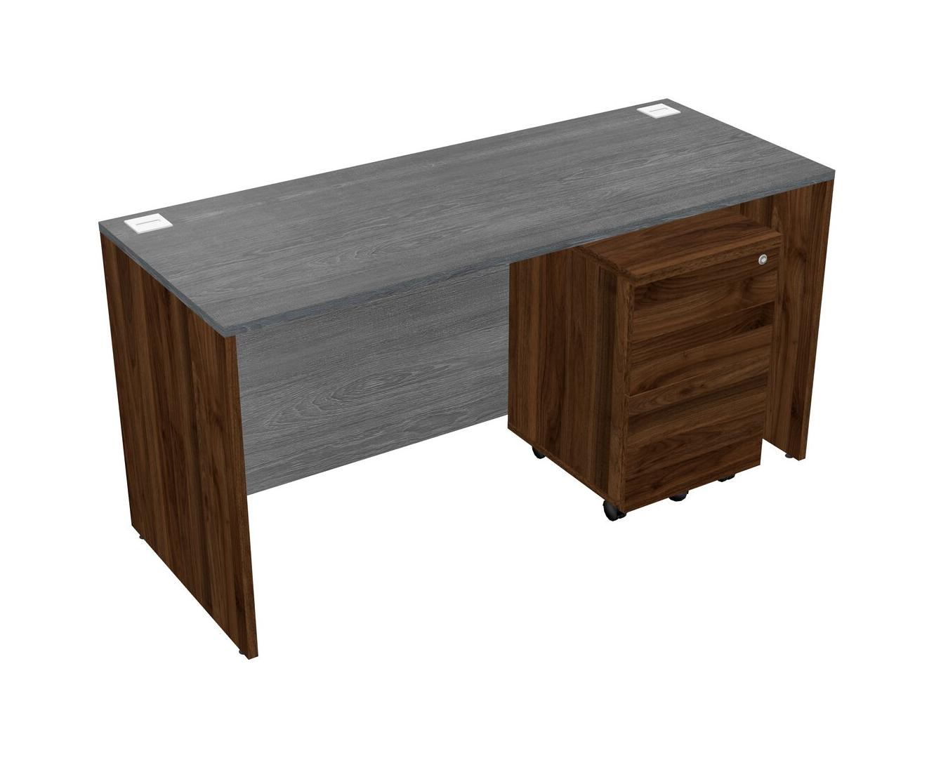 Grey Rectangular Office Desk Plus Columbia Walnut Wooden Mobile Drawers