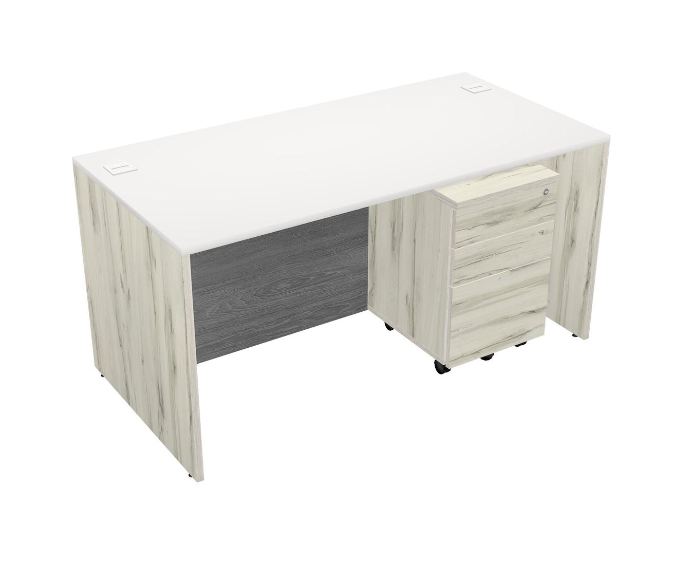 White Rectangular Office Desk Plus Heinne Holz Wooden Mobile Drawers