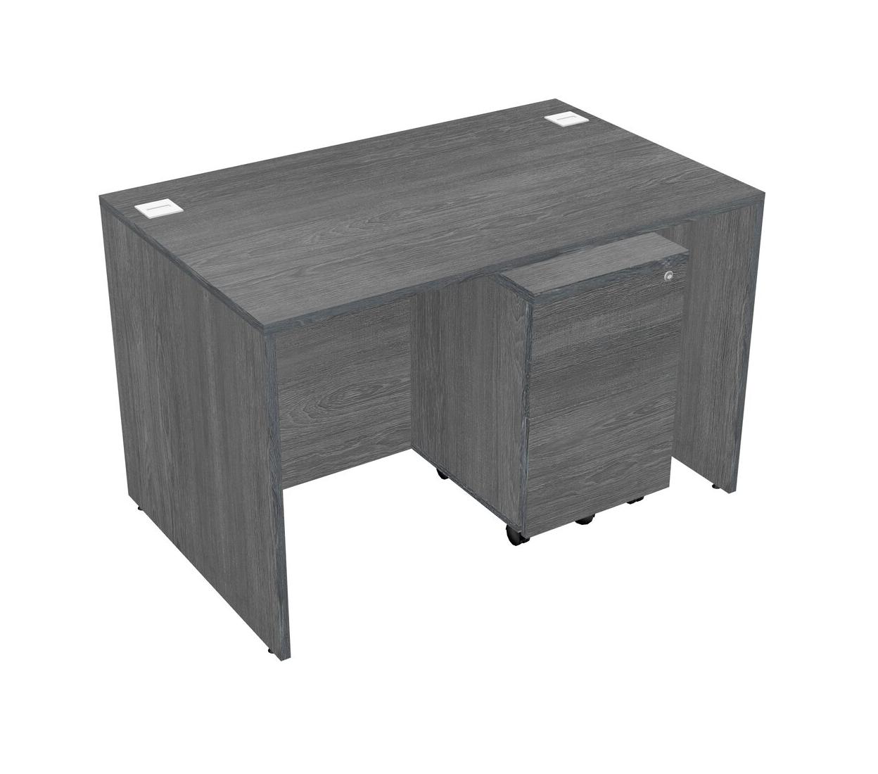 Grey Rectangular Office Desk Plus Grey Wooden Mobile Drawers