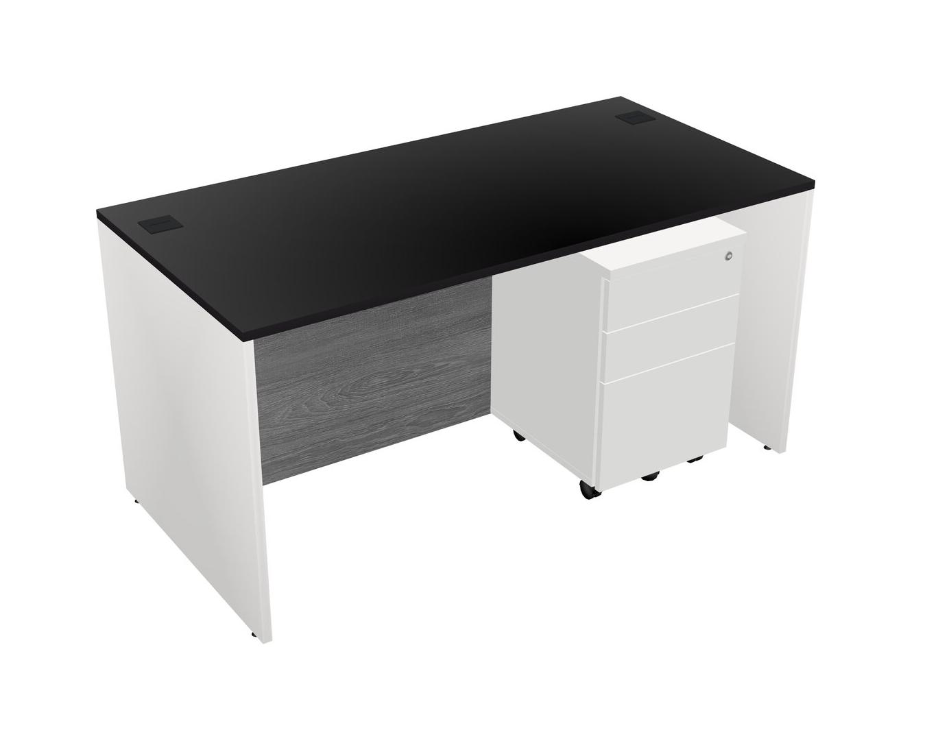Black Rectangular Office Desk Plus White Wooden Mobile Drawers