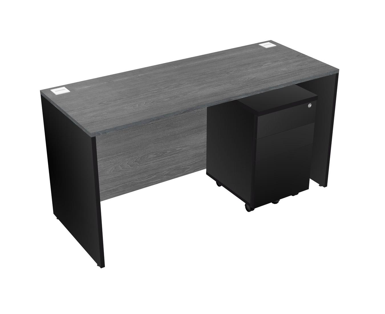 Grey Rectangular Office Desk Plus Black Wooden Mobile Drawers
