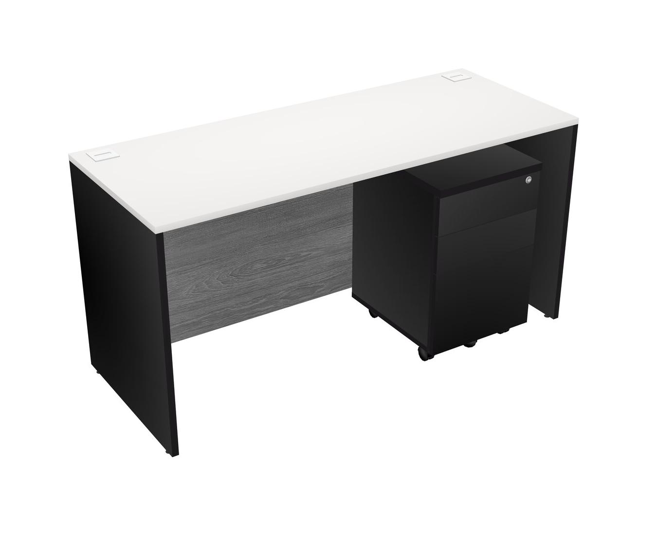 White Rectangular Office Desk Plus Black Wooden Mobile Drawers