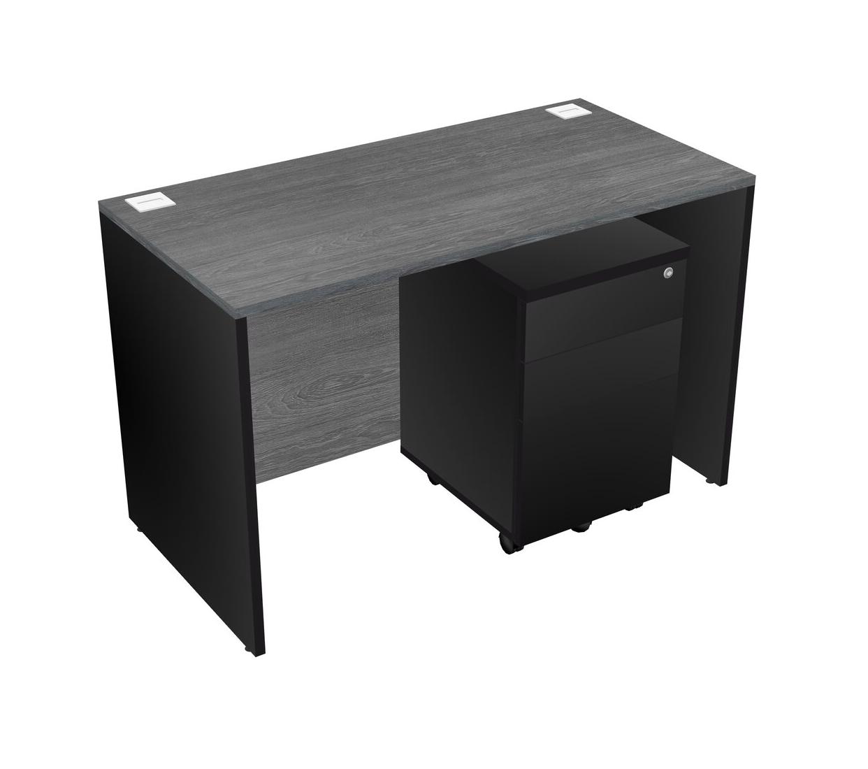 Grey Rectangular Office Desk Plus Black Wooden Mobile Drawers