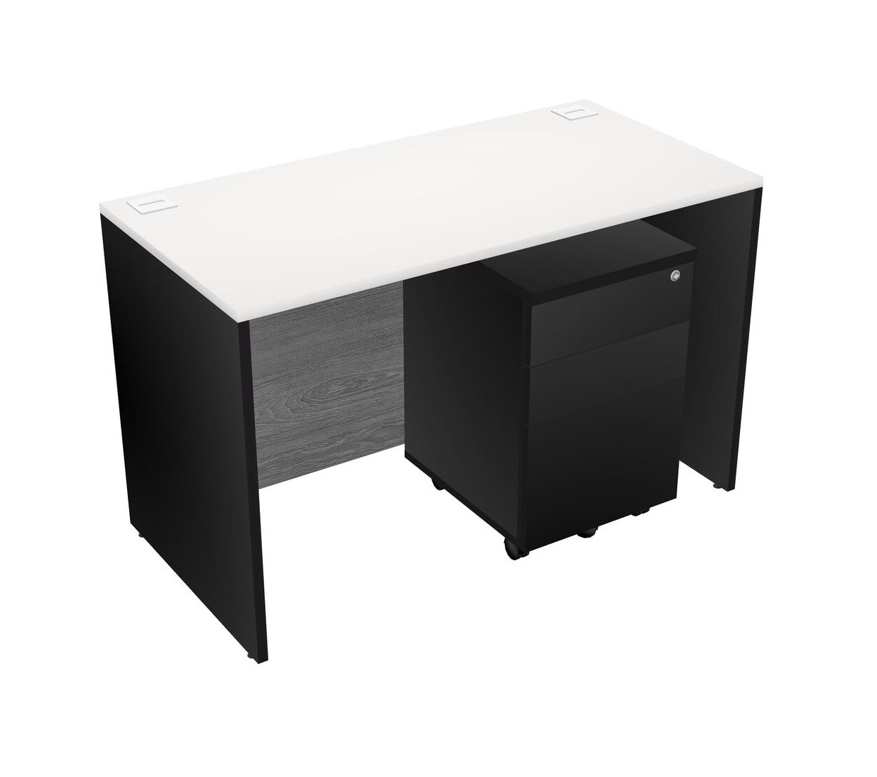 White Rectangular Office Desk Plus Black Wooden Mobile Drawers