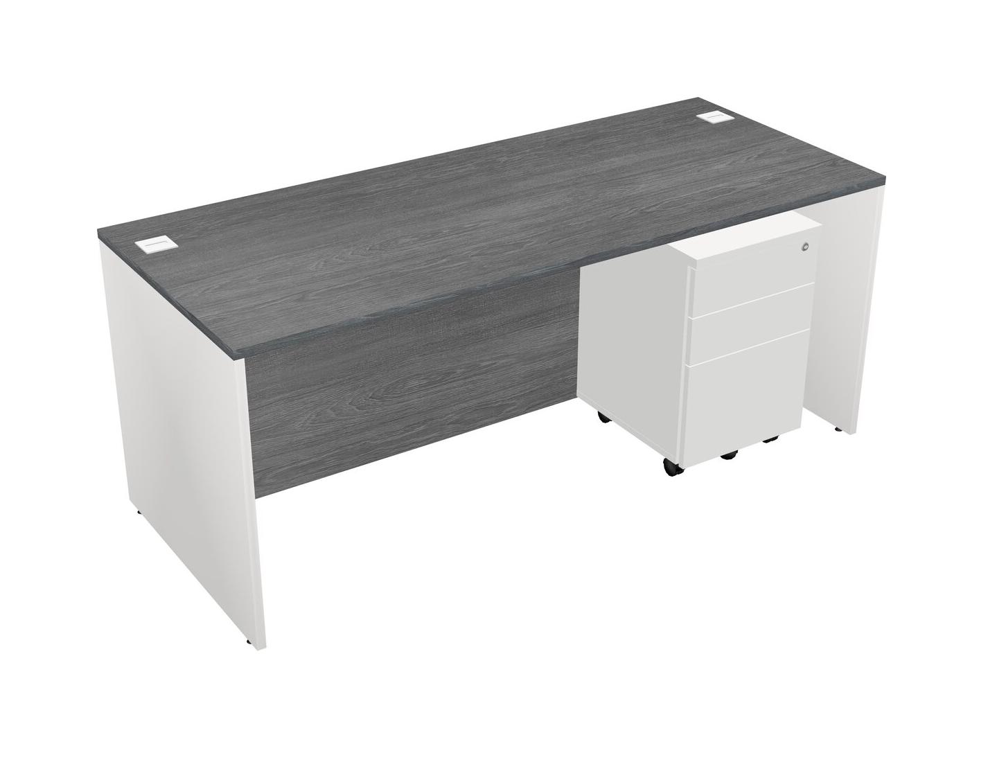 Grey Rectangular Office Desk Plus White Wooden Mobile Drawers